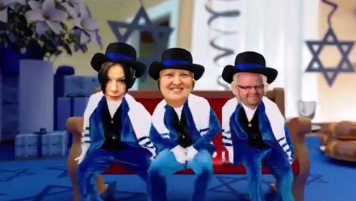 Lets apply a simple test to this video why dont we replace the three non jews superimposed on a caricature of jewish people with white people done up in black face and lets get them to dance for “a bit of fun ” would that be racist?
