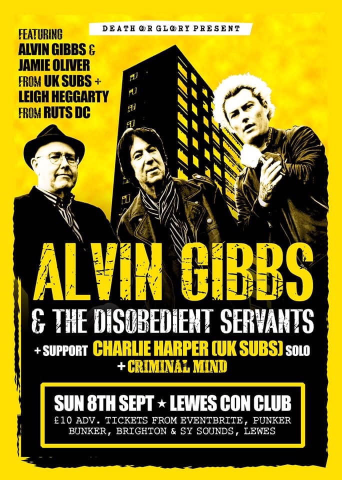ALVIN GIBBS & THE DISOBEDIENT SERVANTS + CRIMINAL MIND + CHARLIE HARPER – CON CLUB, LEWES 08.09.19