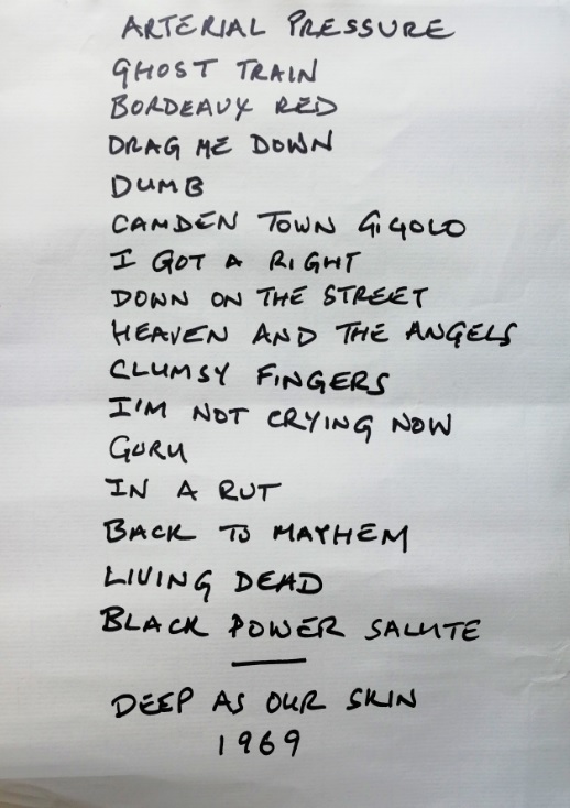 Alvin then halted proceedings to share a touring comparison between his time with Iggy Pop and Charlie Harper and the UK Subs. Talk about chalk and cheese! The gist of the story was that when Alvin was touring with Iggy Pop, they arrived at their hotel in São Paulo, Brazil and Iggy asked where the swimming pool was, there’s wasn’t one, and so he asked where the bar was, there wasn’t one, and so Iggy said that he wasn’t staying there. Whereas when on tour with Charlie and the UK Subs boys, they were driving around the Netherlands looking for a squat where they were meant to be performing. Charlie chirped up about simply asking a punk on a bike where the squat was, which obviously was an extremely long shot. Amazingly they were passed by a punk on a bike who actually knew where the squat was. There was just one light-bulb in this barn that had a cart-horse in it. Charlie said it would be fine as long as they got the horse out. Alvin said that it was one of the very best UK Subs gigs ever – rock’n’roll eh?