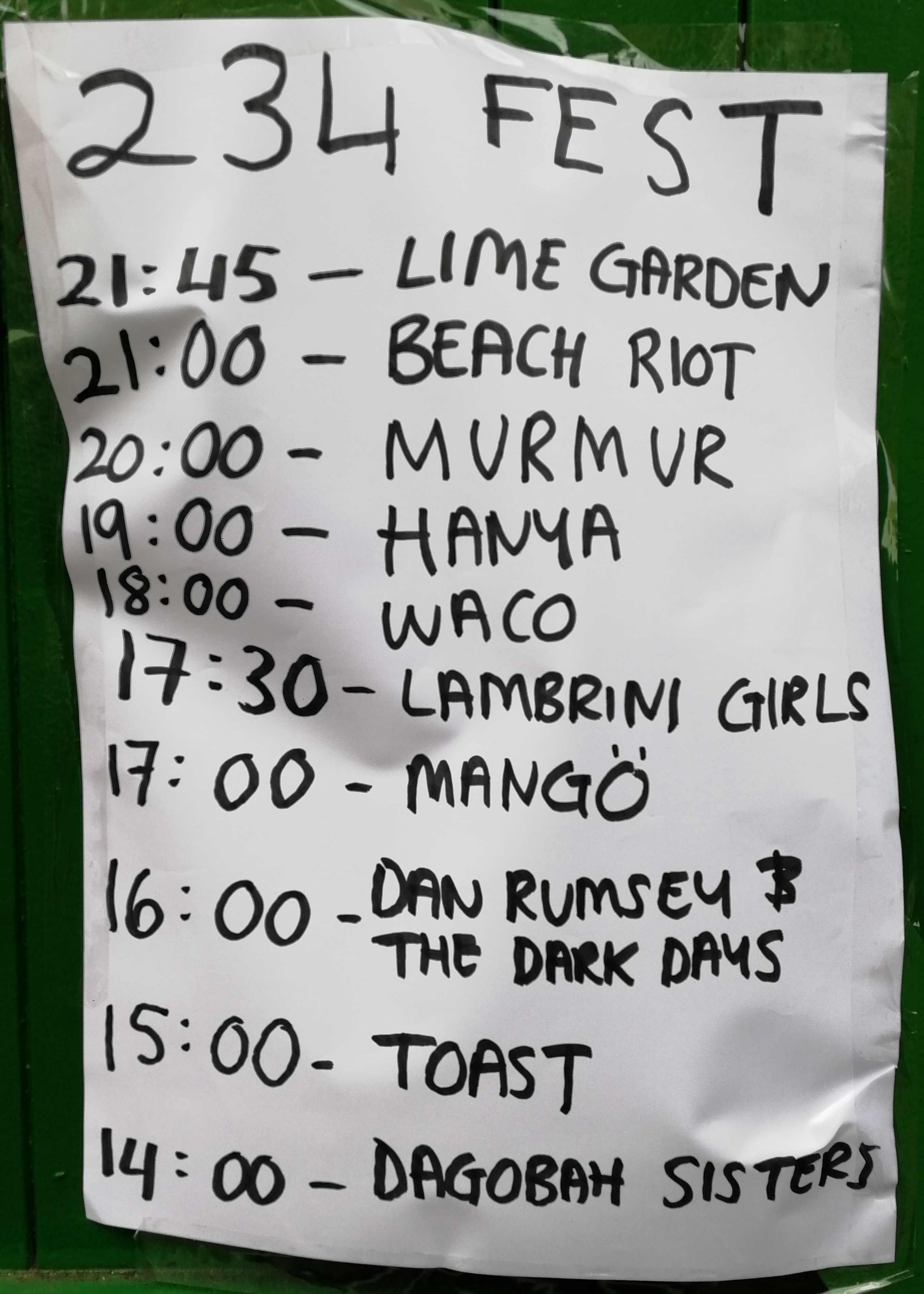 The ‘234 Fest’ line-up was as follows: