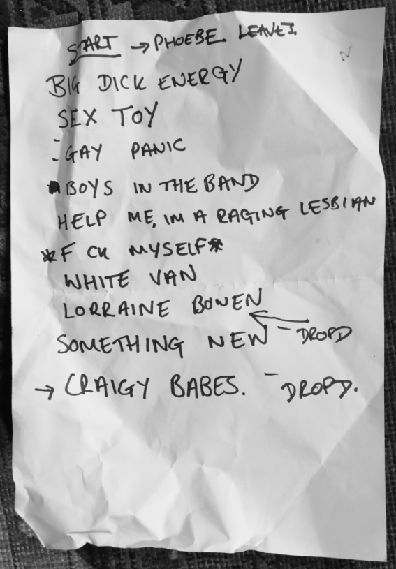 Back to tonight’s performance, I noted that Jane’s guitar playing was the best that I had heard to date. It was so meaty and tight and was holding the whole sound together, with the aid of Lily’s bass playing. Phoebe’s keys and samples were regularly down in the mix as they say, but for the penultimate number, ‘Lipstick’, which was my fave on the night, the guitar was wielded.