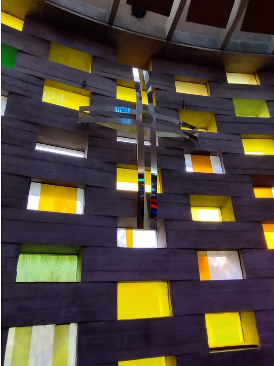 The cross is not an original feature of the 1960s building, which was designed as a religious but not exclusively Christian space, and has already been taken down and stored.