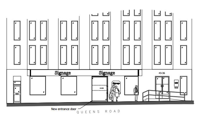 “The ground floor has a retail frontage with large windows. This is not beneficial for office occupiers who prefer privacy from the large number of pedestrians on Queens Road.