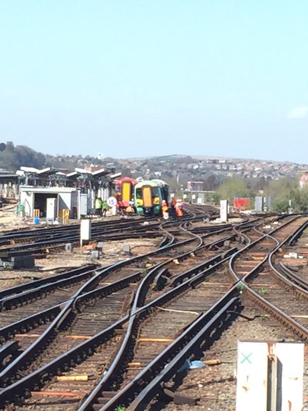 Empty train derailed at Brighton station. Good luck to any and all hoping to travel in the next hour. — Sara Barnard (@saramegan)