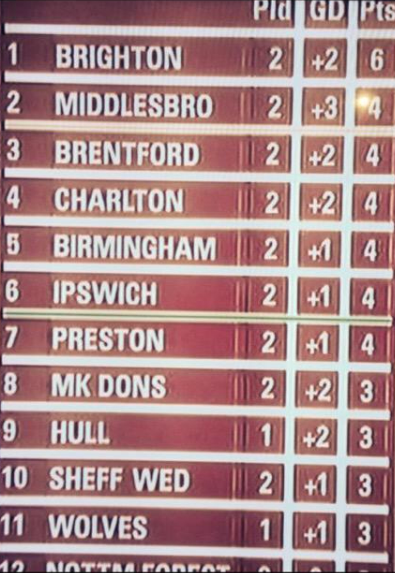 3) That the Seagulls lead the Championship for the first time since 2012 and are currently the top-rated club outside the Premier League.