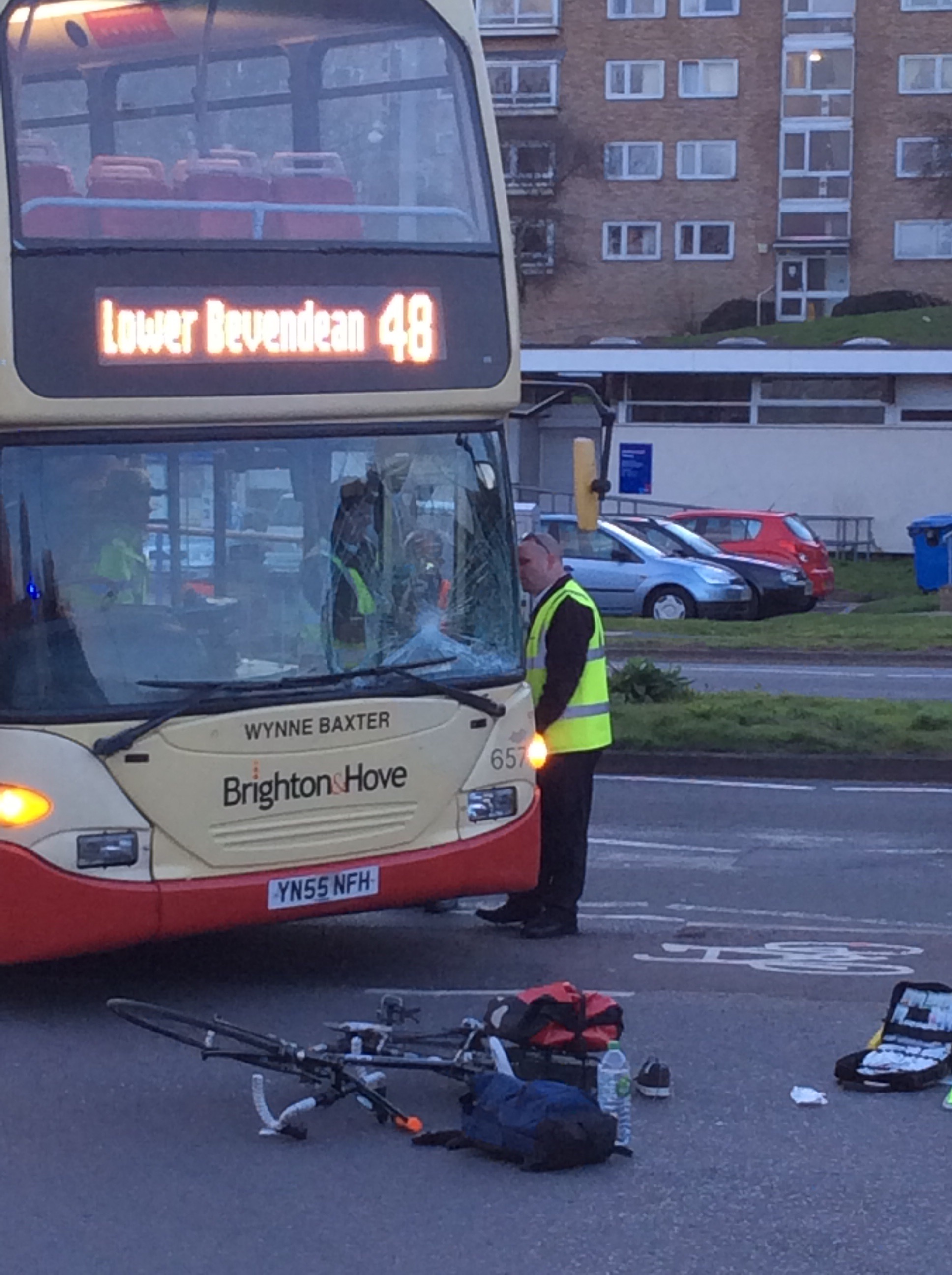 The accident happened in Lewes Road as a number 48 bus was turning right into The Highway on its way to Bevendean.