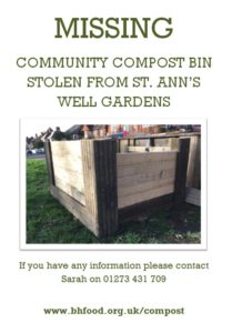 Missing cats and dog posters are commonplace around Brighton and Hove – but people living near St Ann’s Well Gardens are now being asked to keep their eyes out for a missing compost bin.