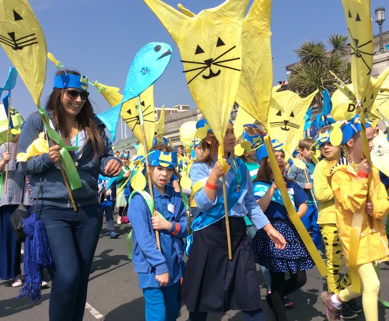 An estimated 5,000 children, parents and school staff took part with about 20,000 friends, family and other supporters lining the streets.