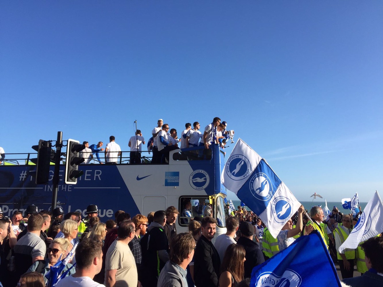 Brighton and Hove were united in celebration as the Albion players and officials paraded along the seafront to celebrate the astonishing achievement of gaining promotion to the FA Premier League.