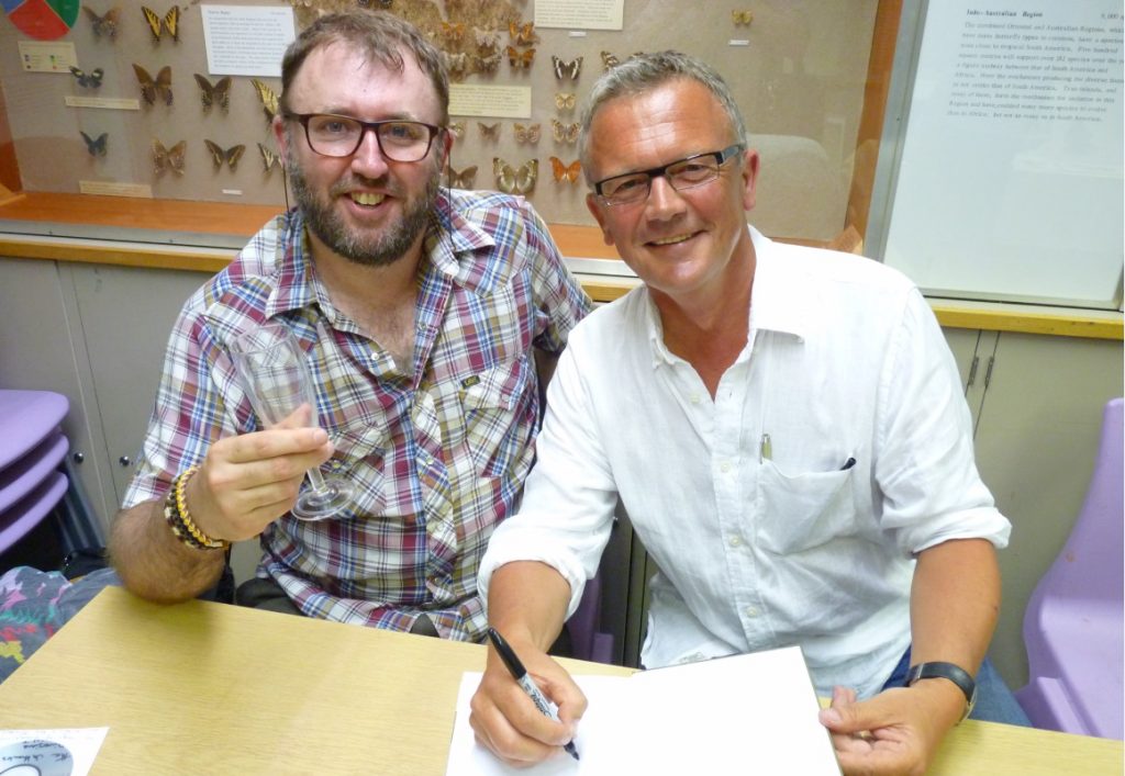 Authors Michael Blencowe & Neil Hulme signing a copy of The Butterflies of Sussex