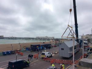 The Aquarium Station was sat – in three modular blocks – waiting for the wind to die down so that they could be placed on their foundations near the Palace Pier and Sea Life Centre.