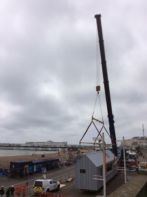 The Aquarium Station was sat – in three modular blocks – waiting for the wind to die down so that they could be placed on their foundations near the Palace Pier and Sea Life Centre.