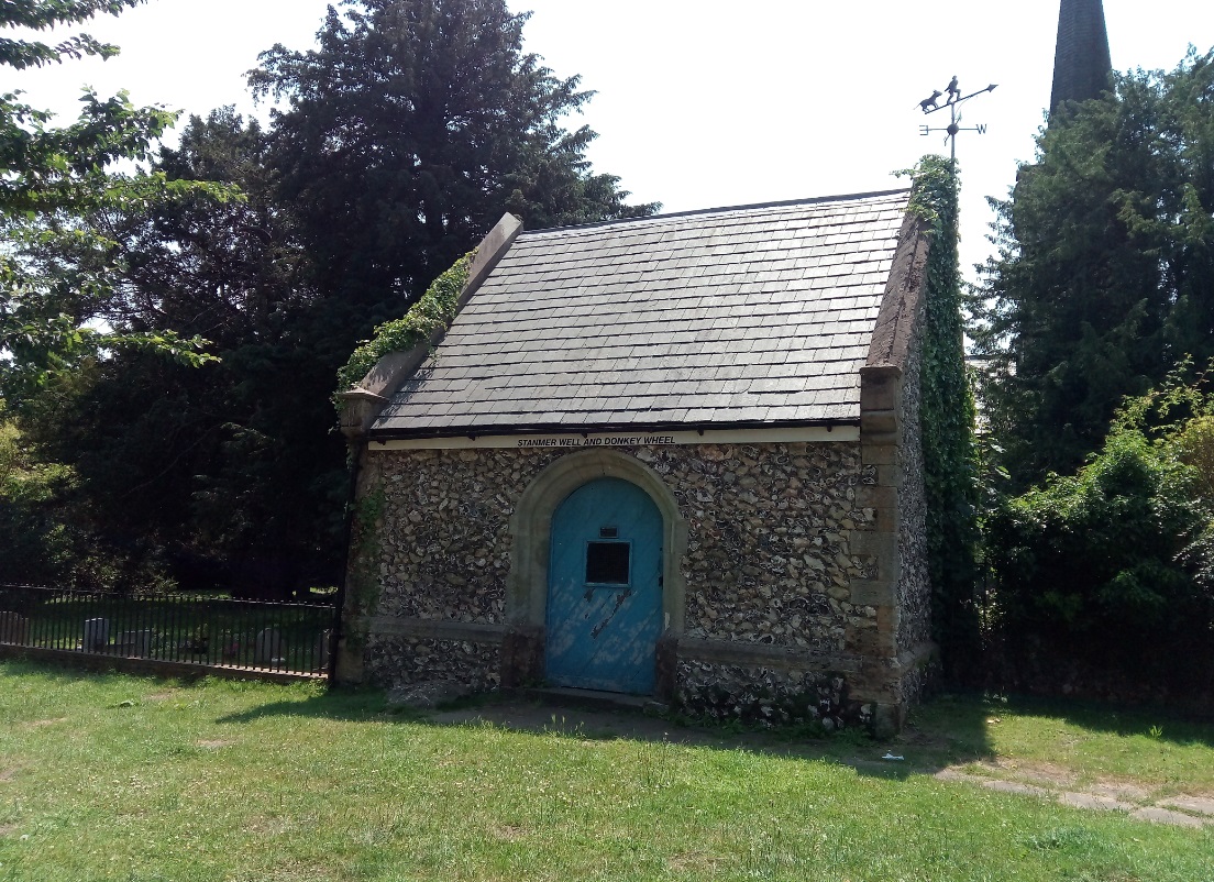 Sitting within Stanmer Conservation Area and hiding behind the knapped flintwork exterior and slated roofed Early English style Stanmer Church within its churchyard is the Stanmer Well and Donkey Wheel.