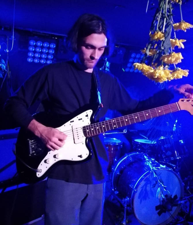 With the ceiling of the stage decked out with real flowers in aid of International Women’s Day, the first act to appear amid the flora and fauna was Kassai, a noise pop band hailing from Watford. The band is made up of Chris Blunt, Mark McCarthy, Anthony Gavriel and drummer Janaki Anderson and they played a mighty fine in-depth set. The guys and gal are obviously decent sorts as they are also performing in their hometown Canned Tunes event at the very end of March – details here.