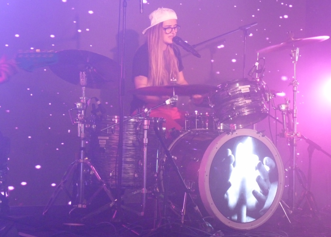 While incubating her new project, she created a round LCD screen for the front of her hand-made kick drum, known as ‘Je Ro Mo’ named as a tribute to her late drum teacher Jenny Rose Morrish. The drum cleverly displays any imagery, video or content that Georgia can dream up and this was certainly put to good use during our Great Escape concert.