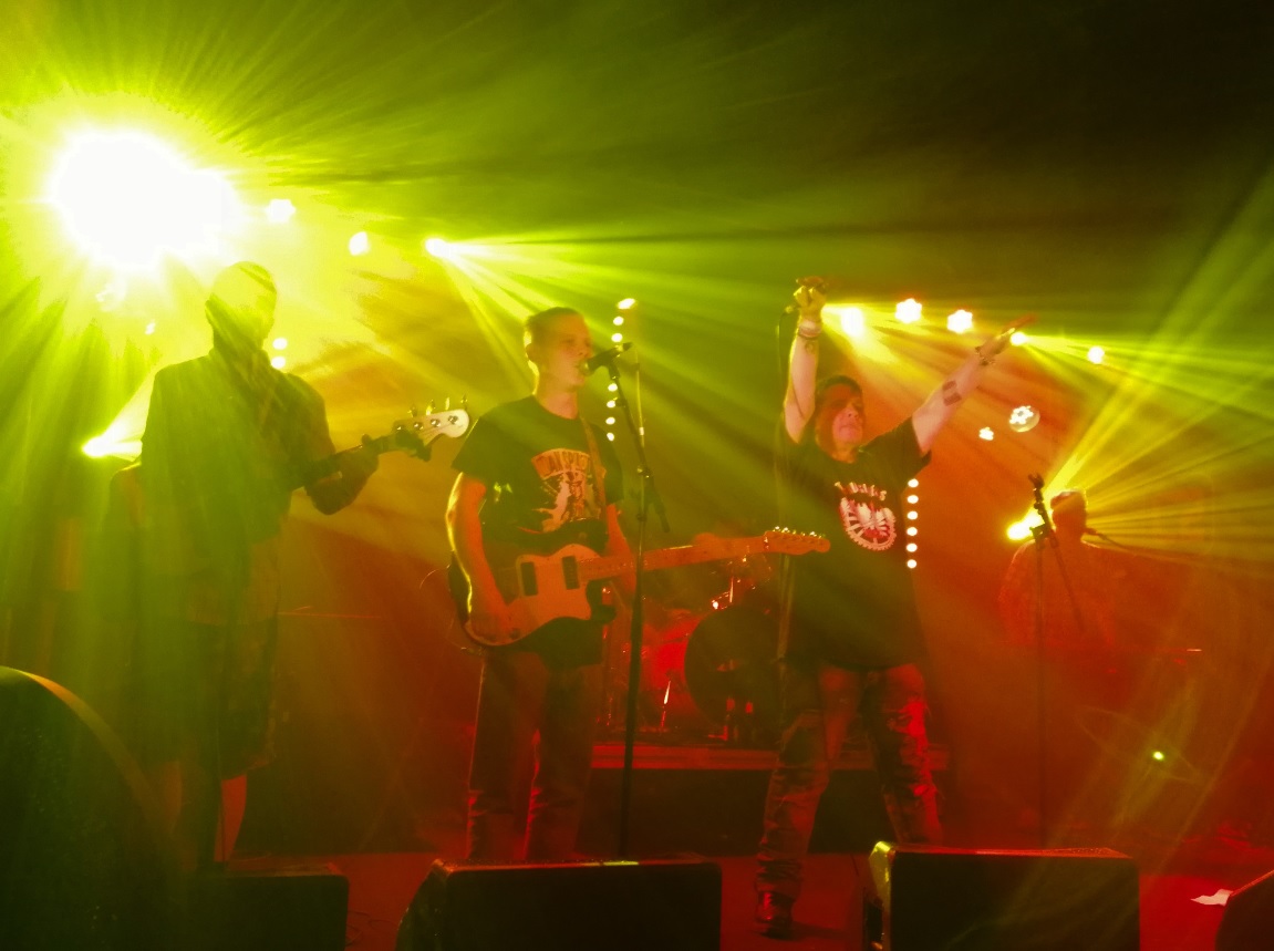 Tonight, Max came on stage and he and his backing band kicked off with a cover version of the Toy Dolls punk rendition of ‘Nellie the Elephant’. This instantly got the crowd up the front moving and put us all in the mood for a good old mosh or dance, whichever was the individuals preference. I didn’t know all of their songs performed, but certainly knew the cover versions tonight. A decent cover of Tenpole Tudor’s ‘The Swords Of A Thousand Men’ had the crowd dancing and singing and their version of Sham 69’s ‘Hurry Up Harry’ stirred it all up to the first frenzy of the evening.