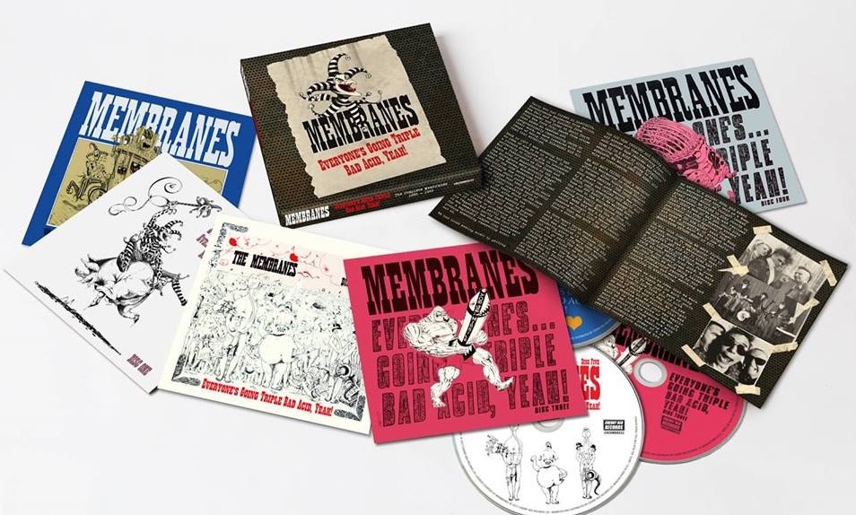 The Membranes entire early discography is now available in one box set, entitled ‘Everyone’s Going Triple Bad Acid. Yeah!: The Complete Recordings 1980-1993’. It includes their five albums recorded for various labels across the 1980’s (on Criminal Damage, Creation, Constrictor, In Tape, etc.) as well as all their singles, B-sides, EPs and extra tracks. It boasts a mere 99 tracks, most of which appear on CD for the first time, from their contribution to the ‘Blackpool Rox EP’ in 1980 right through to their final recordings for the band’s original incarnation in the early 1990’s.