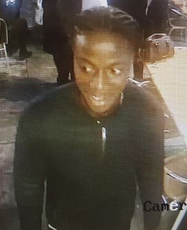Black between 18 and 25, slim build, dark hair in corn rows, wearing dark blue zipped up jacket, dark jeans and dark shoes.