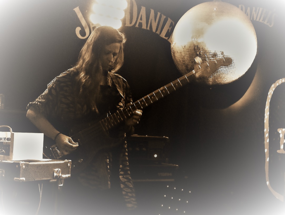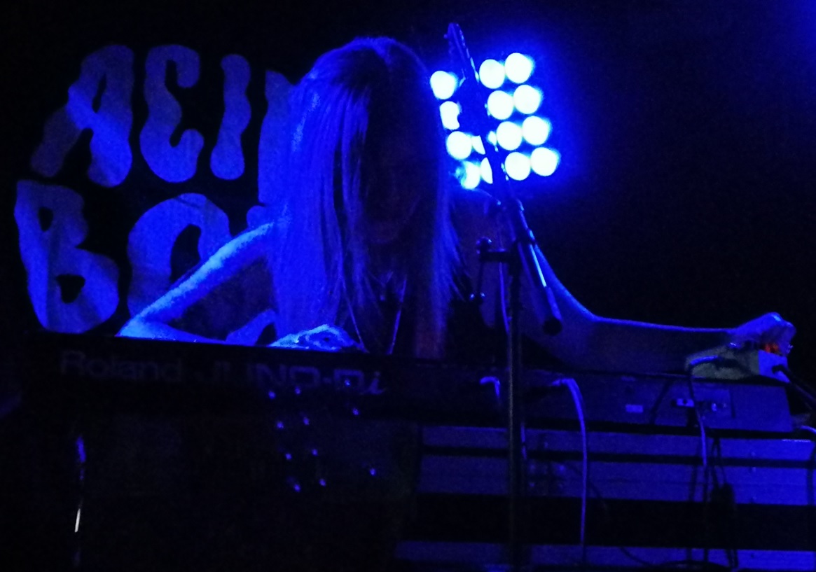 Paula’s vocals thrust lyrics at us and I honestly have no idea what a single word is, whilst at the same time she masters her Roland Juno and electronic magic box. Carla has a box of tricks too as well as her meaty rumbly sounding bass guitar and newest member Mauricio plugs away at his drum set with aplomb. Their previous lady drummer has gone to live in Argentina and so that would have made rehearsals a bit tricky, hence the arrival of Mauricio.