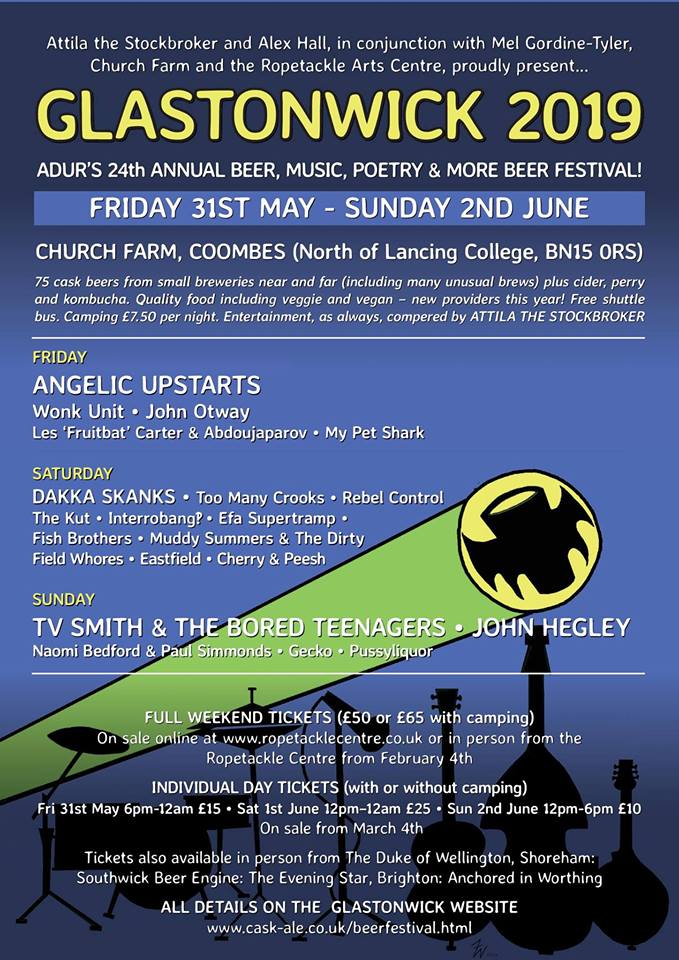 The festival has come about again this year as a result of great teamwork and has been put together by Attila The Stockbroker and Alex Hall, in conjunction with Mel Gordine-Tyler, Church Farm and the Ropetackle Arts Centre.