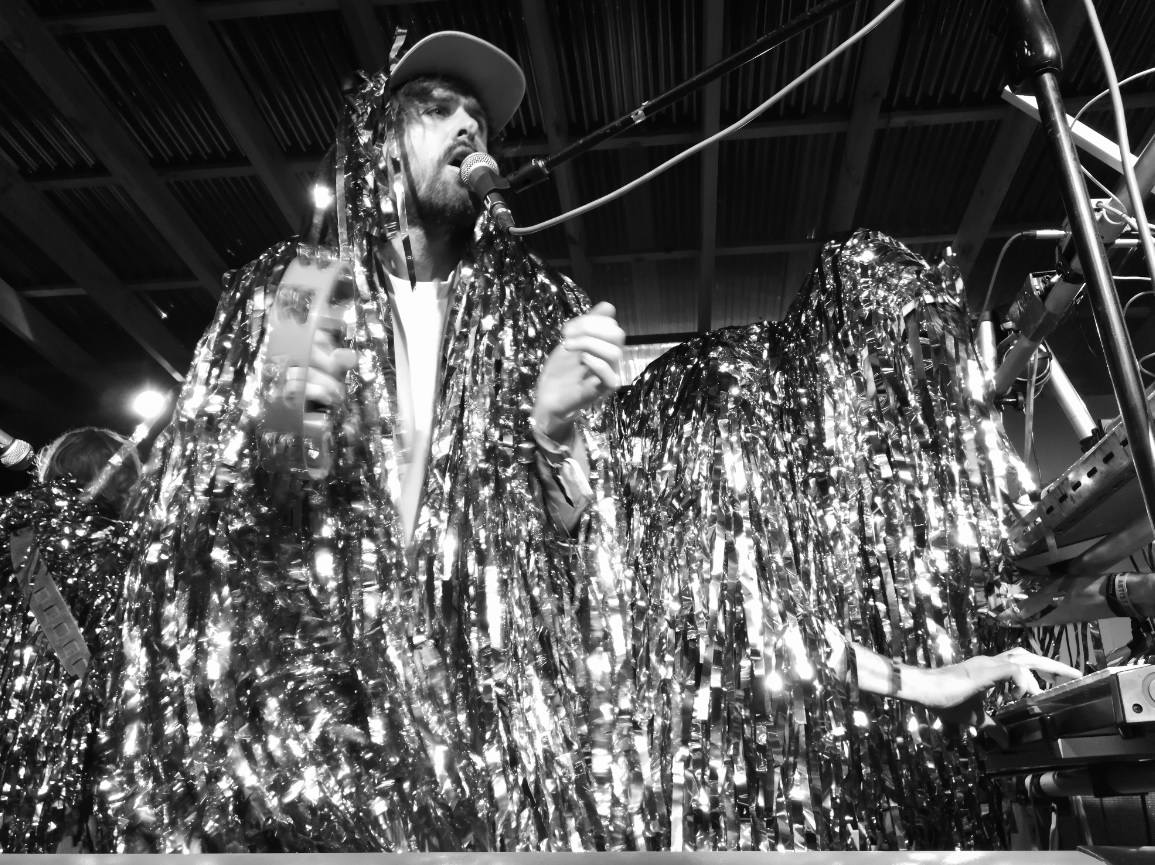 In terms of musical influences, fans of The Flaming Lips, Arcade Fire, Sparklehorse and Tame Impala will all find something to love in Plastic Mermaids’ richly-textured sound. This is amplified by their ecstatic live show, which often sees band members swap instruments on-stage, take violin bows to guitars and use megaphones to twist their sound. Their sparkly-gold cape adorned choir and mascot in the form of a mannequin covered head to toe in mirror ball tiles also nod to their sense of fun and adventure.