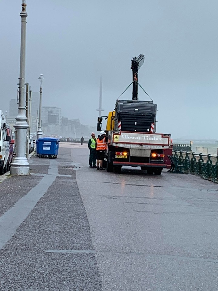 Bins being taken away from Hove seafront last Friday