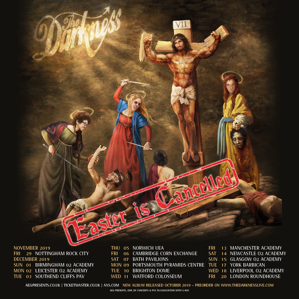 This evening the Brighton Dome sees the return of The Darkness, who last took this venue hostage back on the 11th December 2017 and they’re here again with their ‘Easter Is Cancelled’ tour. The band have already performed in venues right across the UK and will finish up at the Roundhouse in London on the 20th before next year taking on Europe, Australia and the USA.
