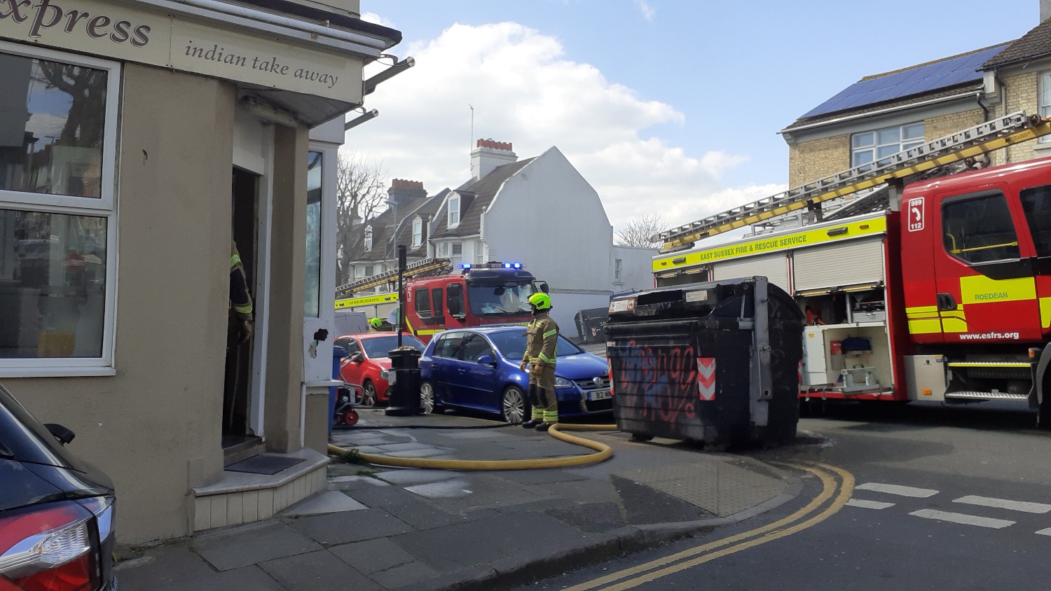 A fire broke out in a kitchen at a flat above a Brighton takeaway this lunchtime.