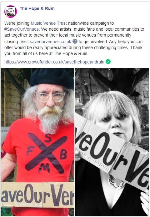 3. Donate to the national #saveourvenues fund via the website www.saveourvenues.co.uk.