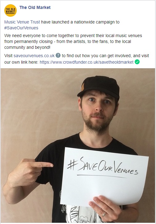 4. Help spread the word on social media using the hashtag #saveourvenues and the campaign link www.saveourvenues.co.uk.