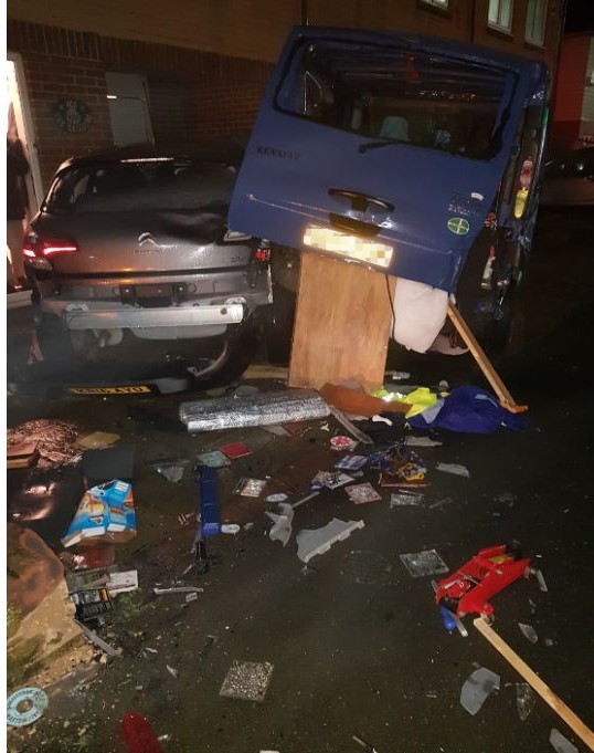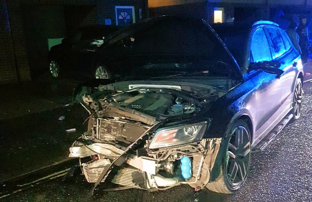“It then collided with a traffic island and bollard, before crashing into three parked vehicles, causing extensive damage.