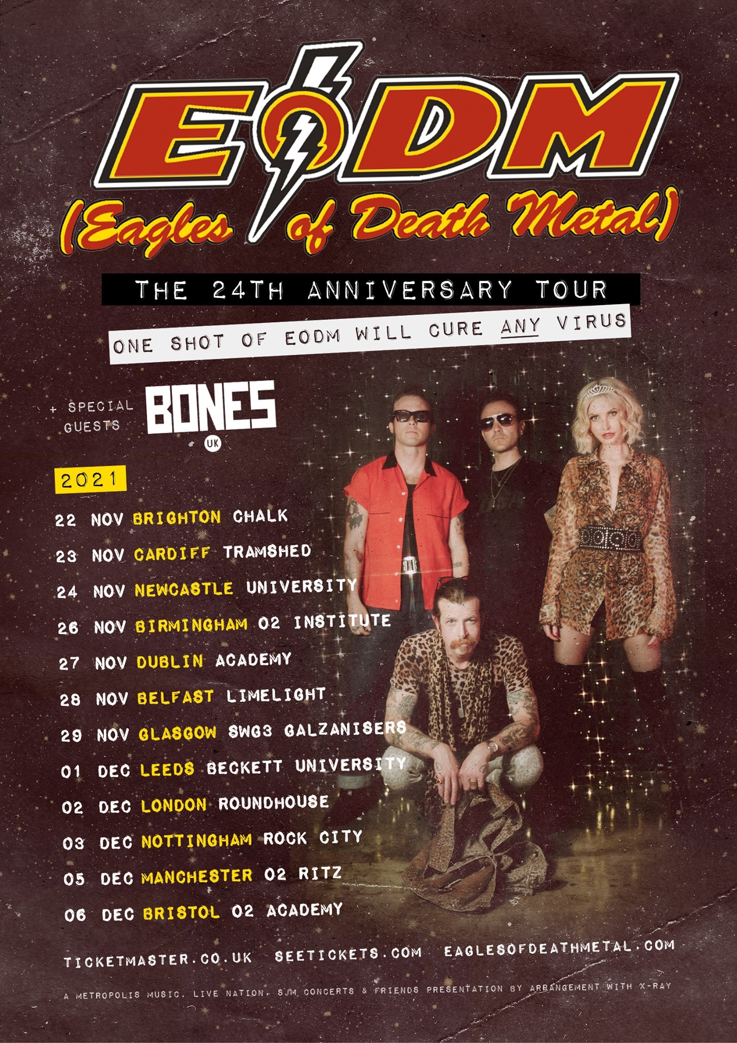 The American rock band Eagles Of Death Metal have announced that they will be kicking off their 24th anniversary 12 date UK and Ireland tour by rockin’ the roof off of CHALK music venue in Brighton on Monday 22nd November 2021.