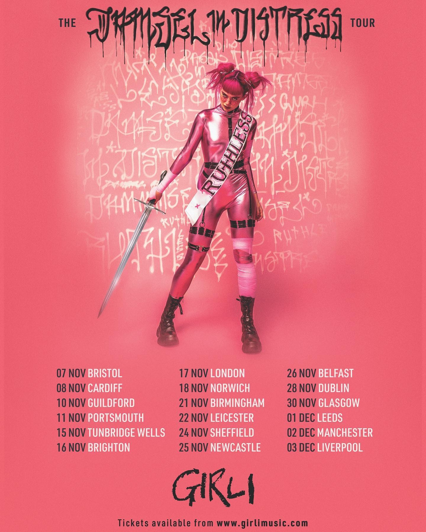 GIRLI has said of the live date news, “I am BEYOND excited to go on tour again. This will be first tour in 2 years, and my first time performing the ‘Ex Talk’ and ‘Damsel In Distress’ songs. Plus it’s the first time I feel I have total creative control over my show. It’s gonna be raucous, high energy, wild and I’m so ready to see all my fans on the road!!”