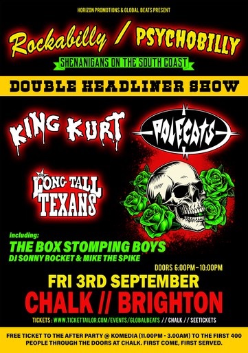 If Rockabilly and Psychobilly are your thing, then you seriously must not miss a double headline show in Brighton on Friday 3rd September 2021. Unusually, there will be not one but two events for you to attend, so you had better get your batteries charged for a fun night out!