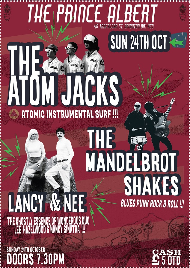 The headline act will be The Atom Jacks who offer up the intriguing nuclear surf from the bunker. This Brighton trio have recently blown the roof off Worthing Surf Festival as much deserved headliners, now they aim to entertain at The Prince Albert with their hugely entertaining live show of surf and instrumentals.