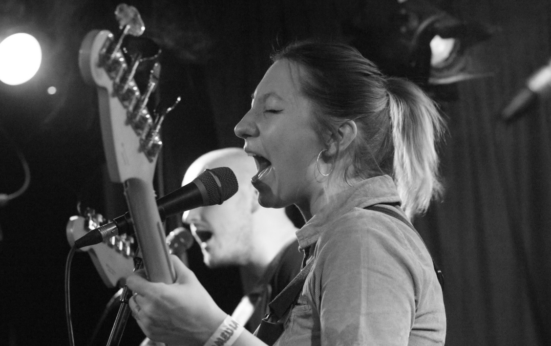 By 7:10pm I had arrived at the venue located at 44 Gardner Street, Brighton, BN1 1UN – that’s Komedia Brighton to us, having found parking nearby. I met up with our photographer Guy Christie and headed on into the venue. We were only the second group of people to arrive. Beers purchased, more gig buddies met, banter exchanged, support act witnessed and then it was time for Jess Eastwood (vocals/bass), Steph Norris (guitar), Joe Perry (guitar) and Guy Page (drums) to grace the stage bang on 9pm.