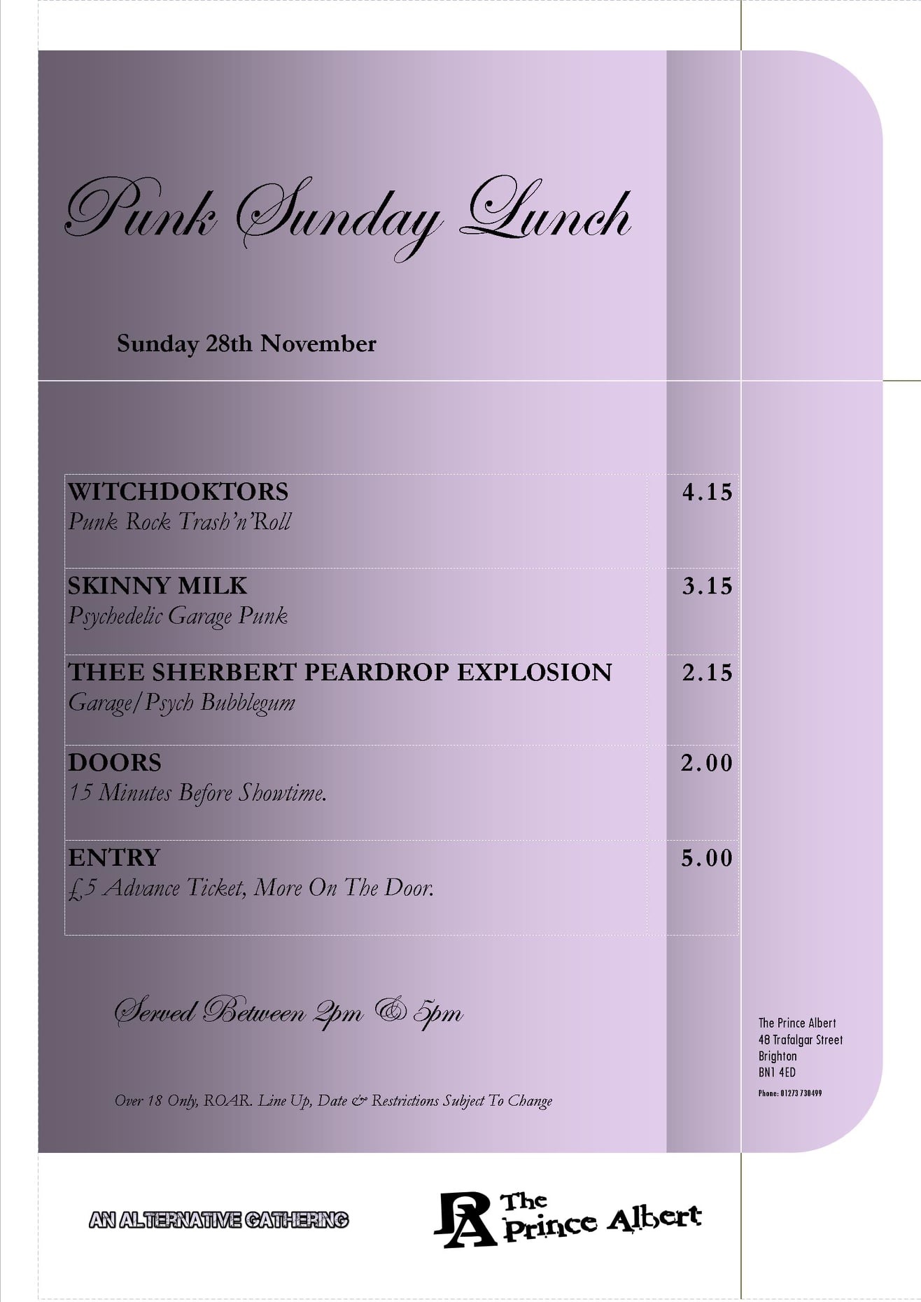 WITCHDOKTORS + SKINNY MILK + THEE SHERBERT PEARDROP EXPLOSION – PRINCE ALBERT 28.11.21