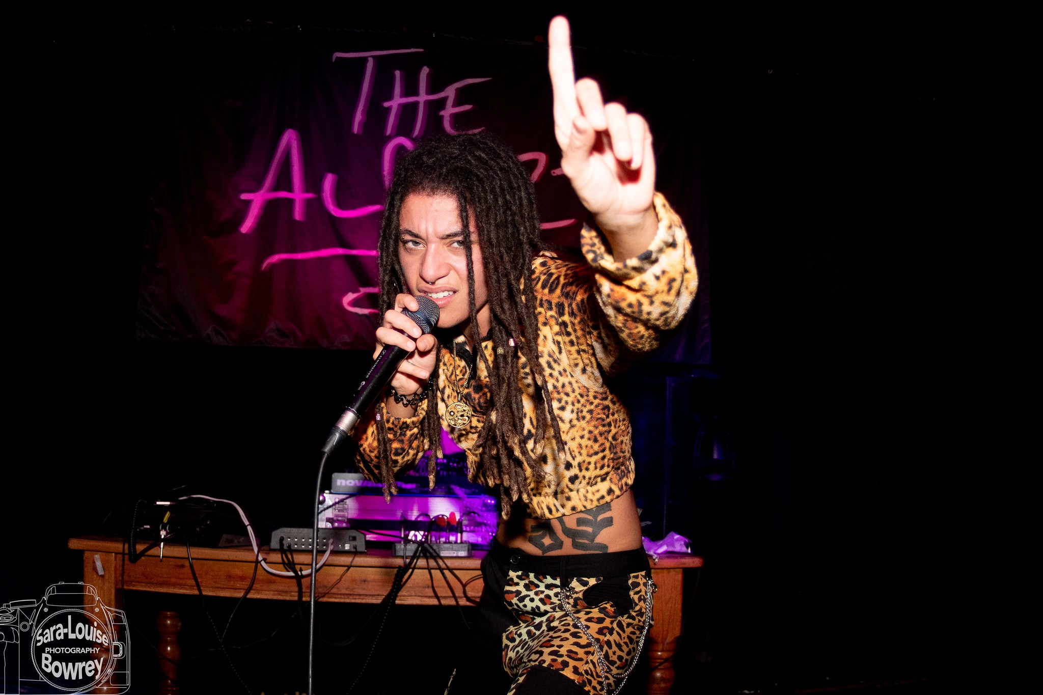 Svelte and tattooed Grove was clad in a mock leopard skin cropped top and matching trousers for the performance. Grove threw the shapes whilst rapping and singing away to a packed crowd who bounced away to da choonz. The half Jamaican, quarter Irish quarter English Grove informed us that they were proud to be gay as they warmly interacted with the punters.