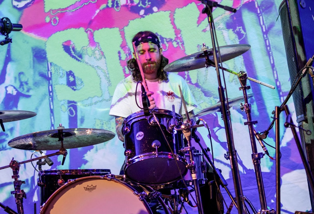 Prior to the Oh! Gunquit set, the band carefully rested a copy of each of their vinyl releases against the front speakers for everyone to see and hopefully purchase. I immediately wondered whether the records would be able to sustain the constant vibrations throughout their swinging set? I hate to see vinyl damaged in any way and this trio of discs were likely to be in real trouble.