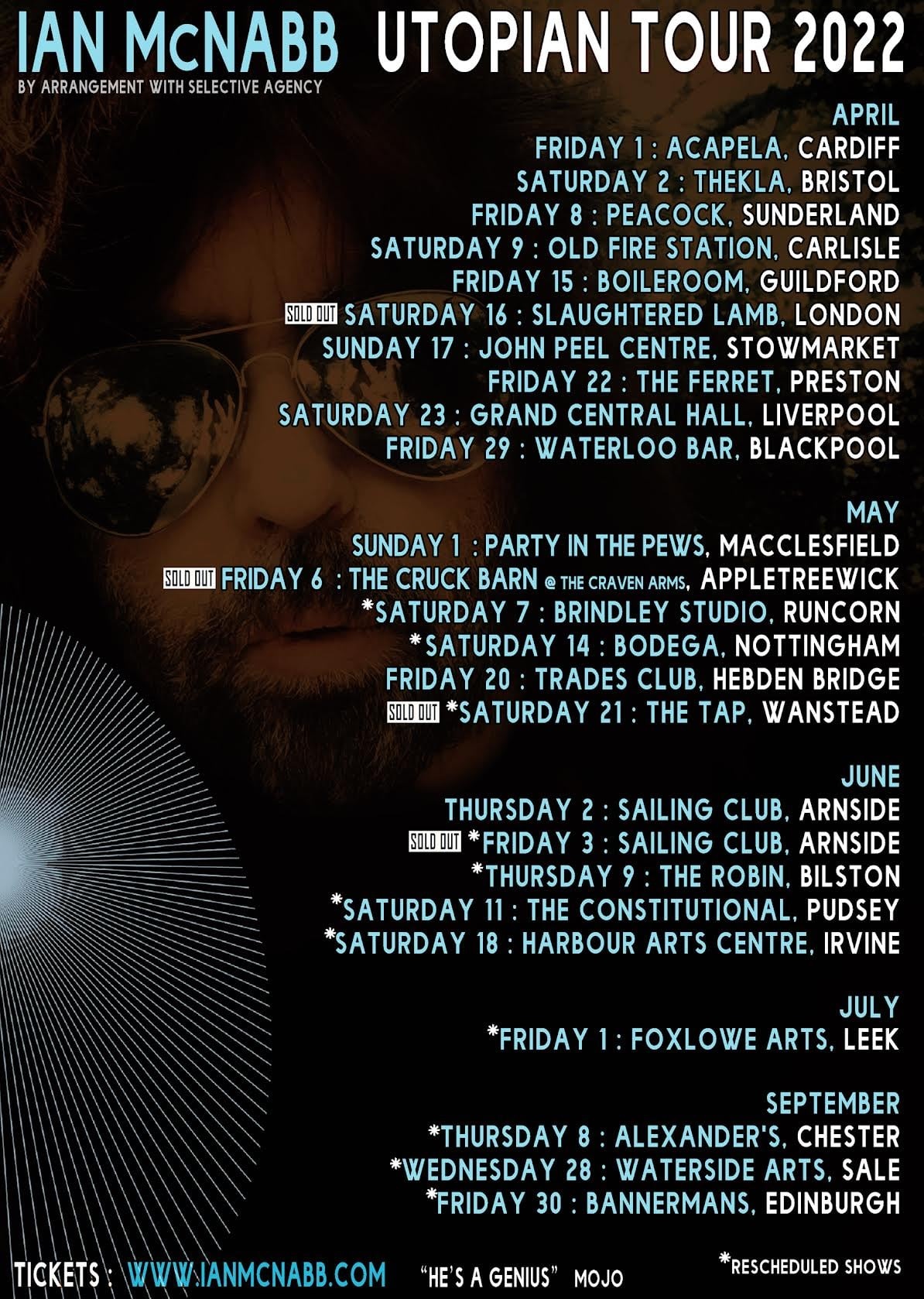 Sadly after this opening night concert of the ‘Utopian’ tour, McNabb’s mother passed away, and so the following tour dates have now been rescheduled. Please refer to the tour poster below for the new correct dates or visit www.ianmcnabb.com for more information.