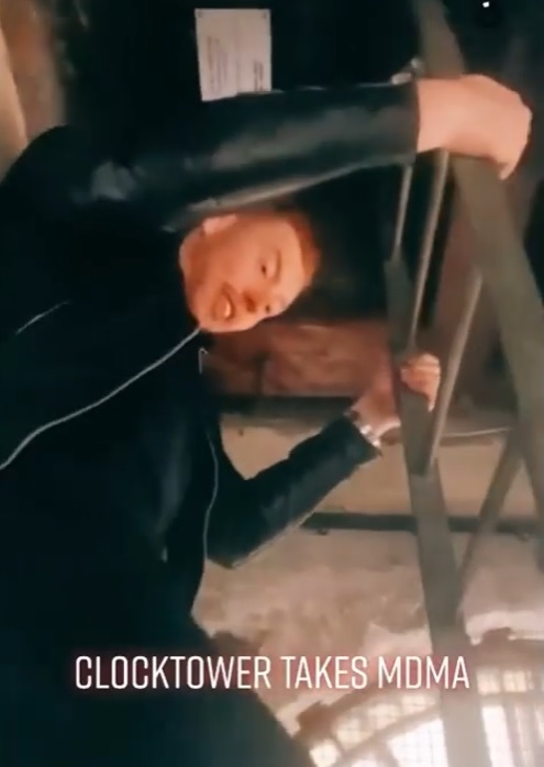 Someone walks past him, and the person filming says: “Mate, the fucking clock’s changing time What’s going on?”