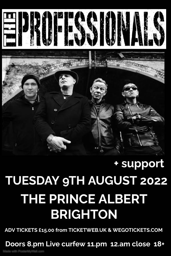 It has been announced that former Sex Pistol drummer Paul Cook will be bringing his band The Professionals to Brighton on Tuesday 9th August 2022, when they will be rockin’ on up at The Prince Albert, which is located by Brighton mainline railway station.
