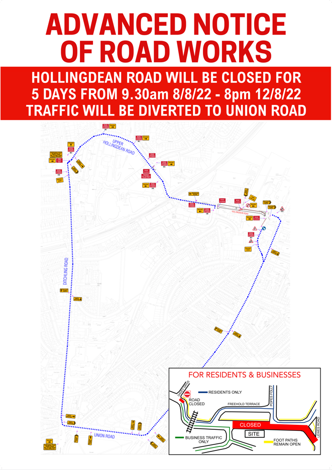 The company said that Hollingdean Road would close at 9.30am on Monday 8 August and should reopen by 8pm on Friday 12 August.