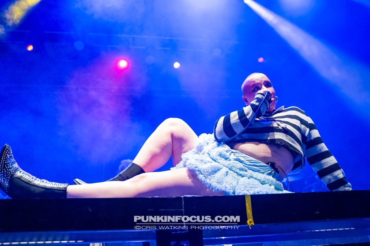 With an entrance as dramatic as their glam rock influences, Liverpool’s Gen and The Degenerates followed this up. Their debut single ‘Underwear’ opened their set in style, as trailblazing vocalist Gen put their sultry low voice into an ode to gender non-conformity. Nothing will rally a diverse audience quite like a band performing with the confidence of all the hair metal greats and asking “gender’s a performance: are you selling out the show?”