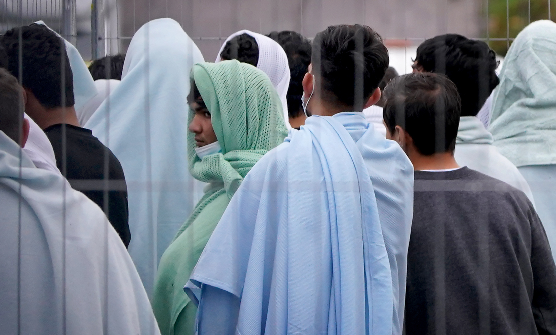 People believed to be migrants at Manston in Kent – Picture by Gareth Fuller / PA