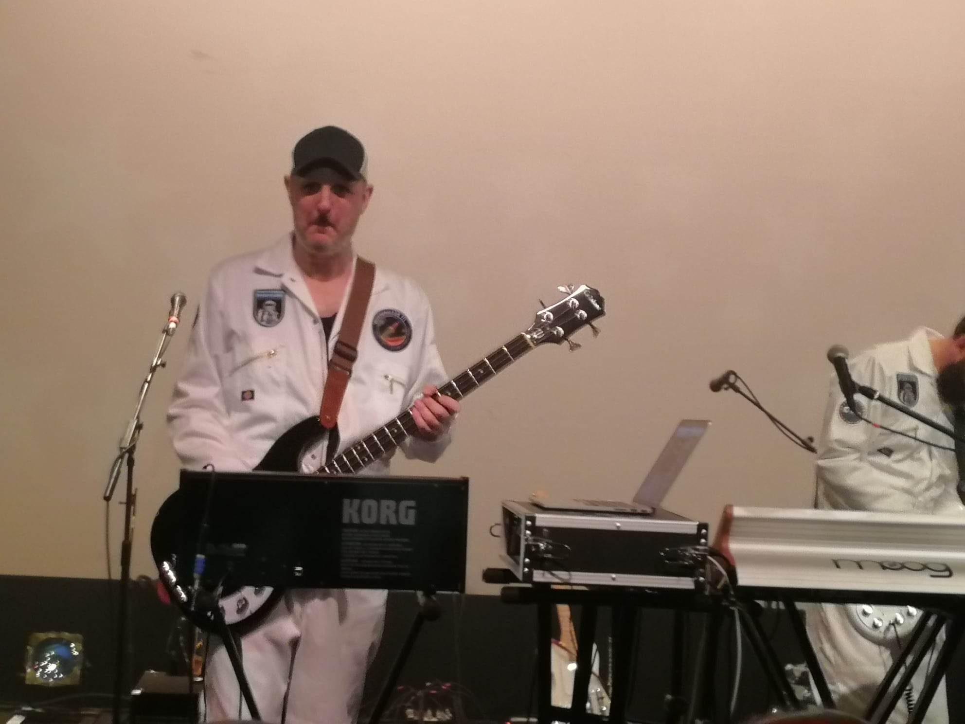 Clearly they are an act that don’t take themselves seriously, as they borrow their sounds from right across a wide spectrum. Each of their tunes seemed to offer something of a nod here and there. Tunes one and two (above) seemed to merge Hawkwind with early 80’s disco, and thus I had christened their sound as “wavey space rock”. Which was backed up by the arrival of ‘Hellfire Club’ as a pseudo space rock disco tune, which was the best so far. After which, they announced that they were surprised that they have such a young following as they are mature guys.