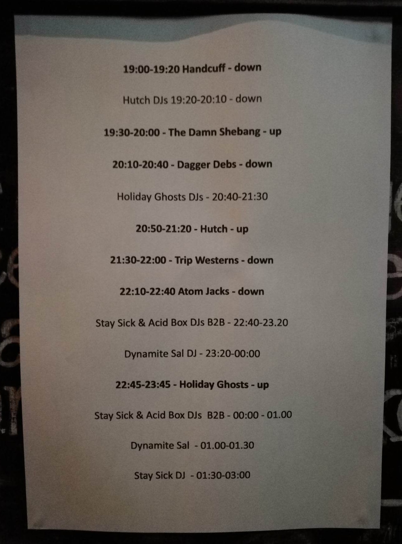 The plan of action was for us to whiz between venues in order to cover as much as the action as possible. We were rather successful with this and hardly missed any tunes between us. Thus we would like to share our experiences of the night in the order that it happened. So without further ado, here goes……