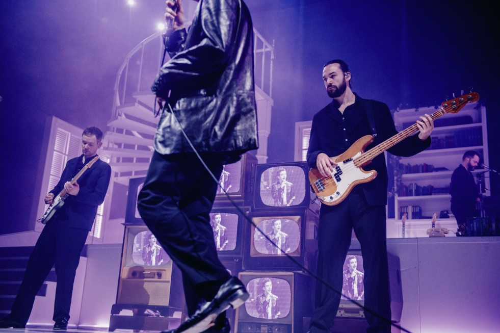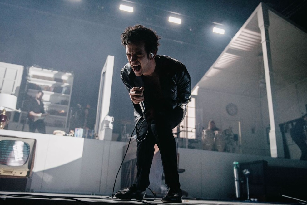 At 8:30, the curtain rose to reveal an impressive stage set. On stage there was a house with different rooms. Each member of the band walked on stage through doors in the house, being introduced on screen as if we were watching the intro to a classic 90s sitcom like ‘Friends.’ Frontman Matty Healy came straight out smoking a cigarette and taking swigs from his hip flask. I’ve never seen anyone smoking, drinking, singing, and playing the piano at the same time, but somehow Matty managed to do exactly that!