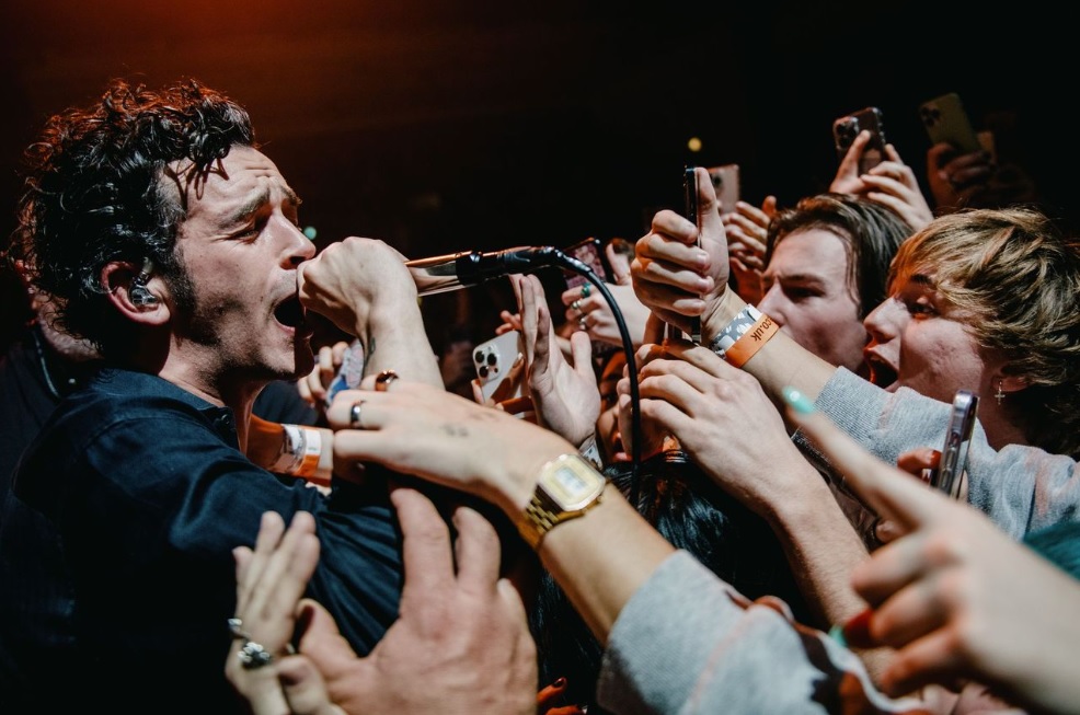 During breaks between songs, Matty partook in various pieces of dramatic behaviour, the most bizarre being sat on the floor and taking a bite out of raw beef. At first I thought it was a banana with raw meat wrapped around it, but after having a closer look, I’m really not sure. Hearing the tear of the meat made me shudder; I have no idea how he managed to stomach that. He then turned towards the set of TV screens behind him and did press ups whilst videos of Rishi Sunak, Liz Truss, and Donald Trump played. I thought I spotted Logan Paul in one of the videos, but without any photographic evidence, perhaps I made it up! It was the most bizarre few minutes of my life, but it captures the spirit of the tour—you never know what to expect!