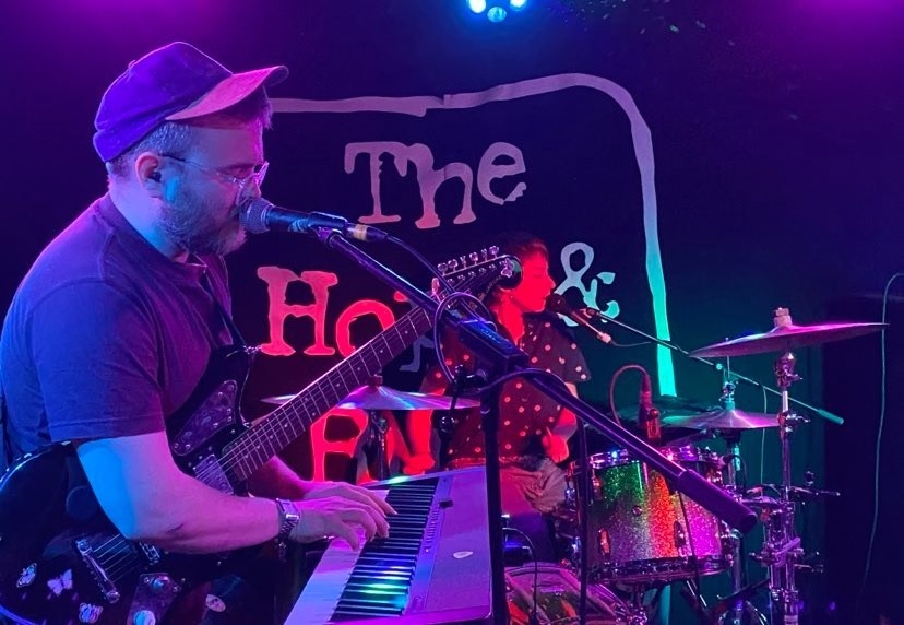 “There’s a relaxed vibe and cosy atmosphere upstairs in The Hope And Ruin, and I’m here to check out indie rockers Me Rex, who are from London and Brighton. They incorporate members of Fresh and Happy Accidents, and clearly have a fondness for dinosaurs and prehistoric mammals, naming their records after these long-extinct denizens of bygone eras. The band are no fossils though; they are lively and fun. I was expecting a four-piece, but there are three players tonight. Myles is on lead vocals, doing a pogo-style dance behind a keyboard, whilst wielding a Jaguar guitar. Bassist Rich is tall, thin, and bespectacled, the very epitome of geek-chic. Behind the kit, Phoebe has a beaming smile and seems to move her whole body whilst generating an infectious shuffle beat”.